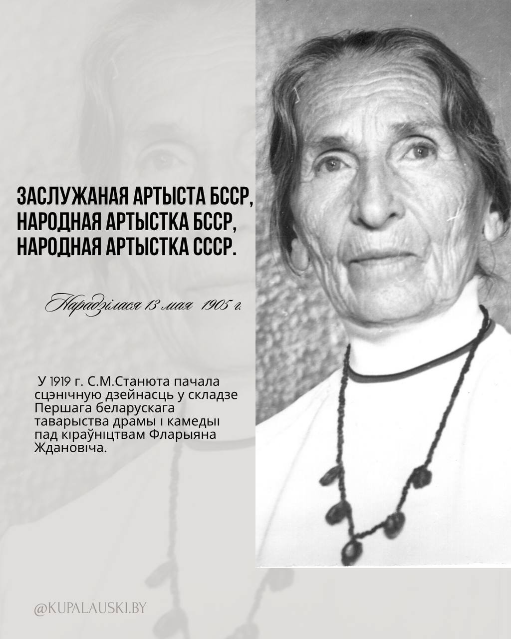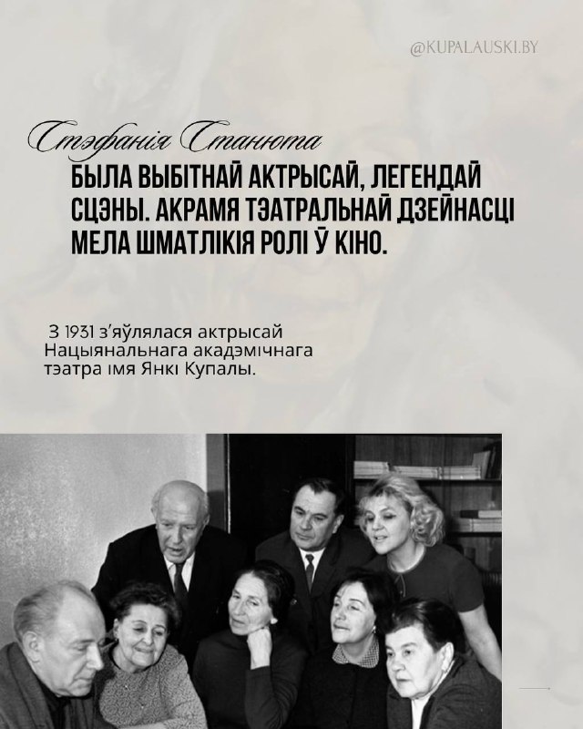 13 мая 2025 года – 120 гадоў са дня нараджэння аднаго з яркіх сімвалаў нашага тэатра, таленавітай купалаўкі Стэфаніі Міхайлаўны Станюты !