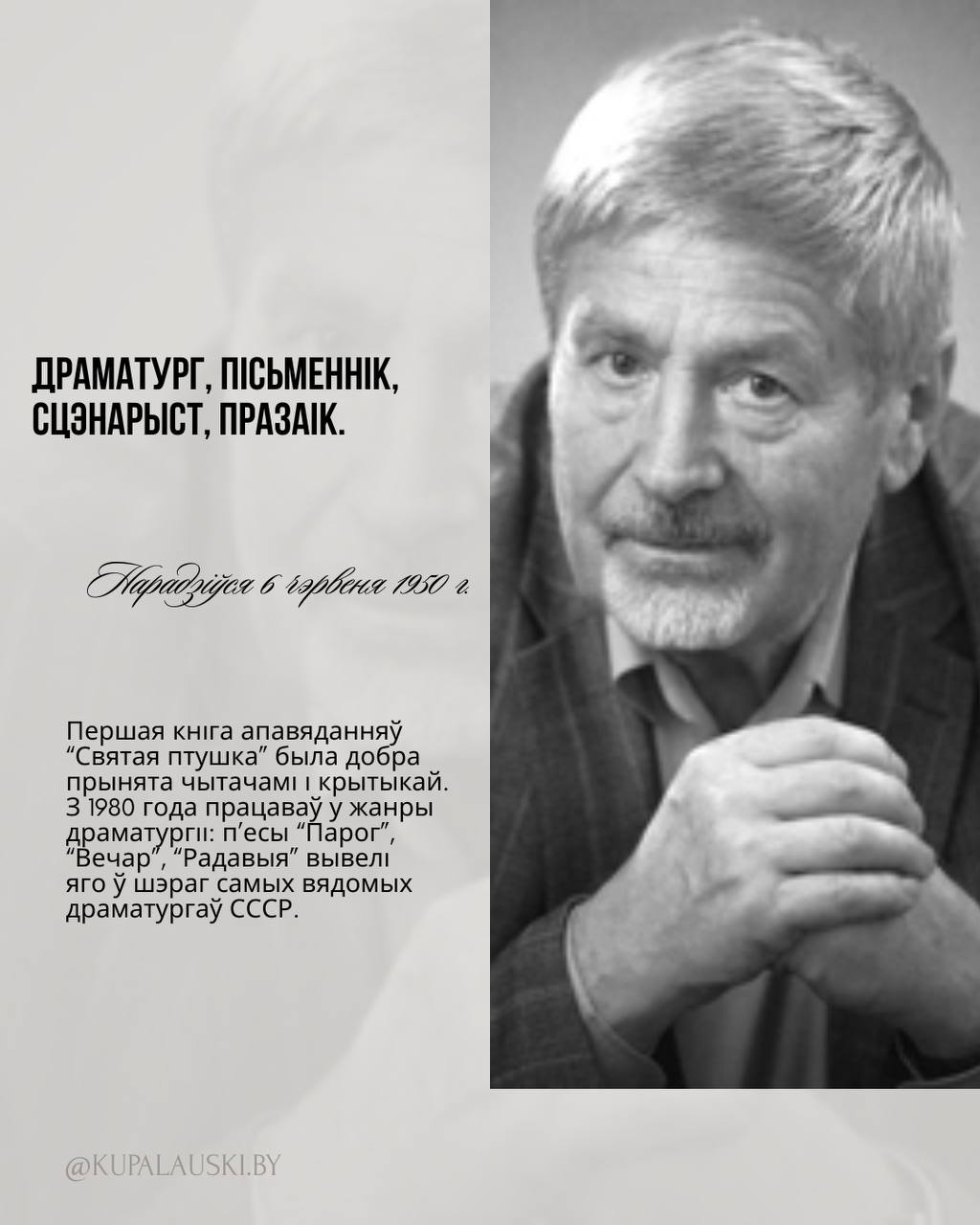 Гэта чалавек, чые творчасць і ўнікальны стыль зрабілі велізарны ўнёсак у развіццё тэатральнага мастацтва, у тым ліку і Купалаўскага тэатра.