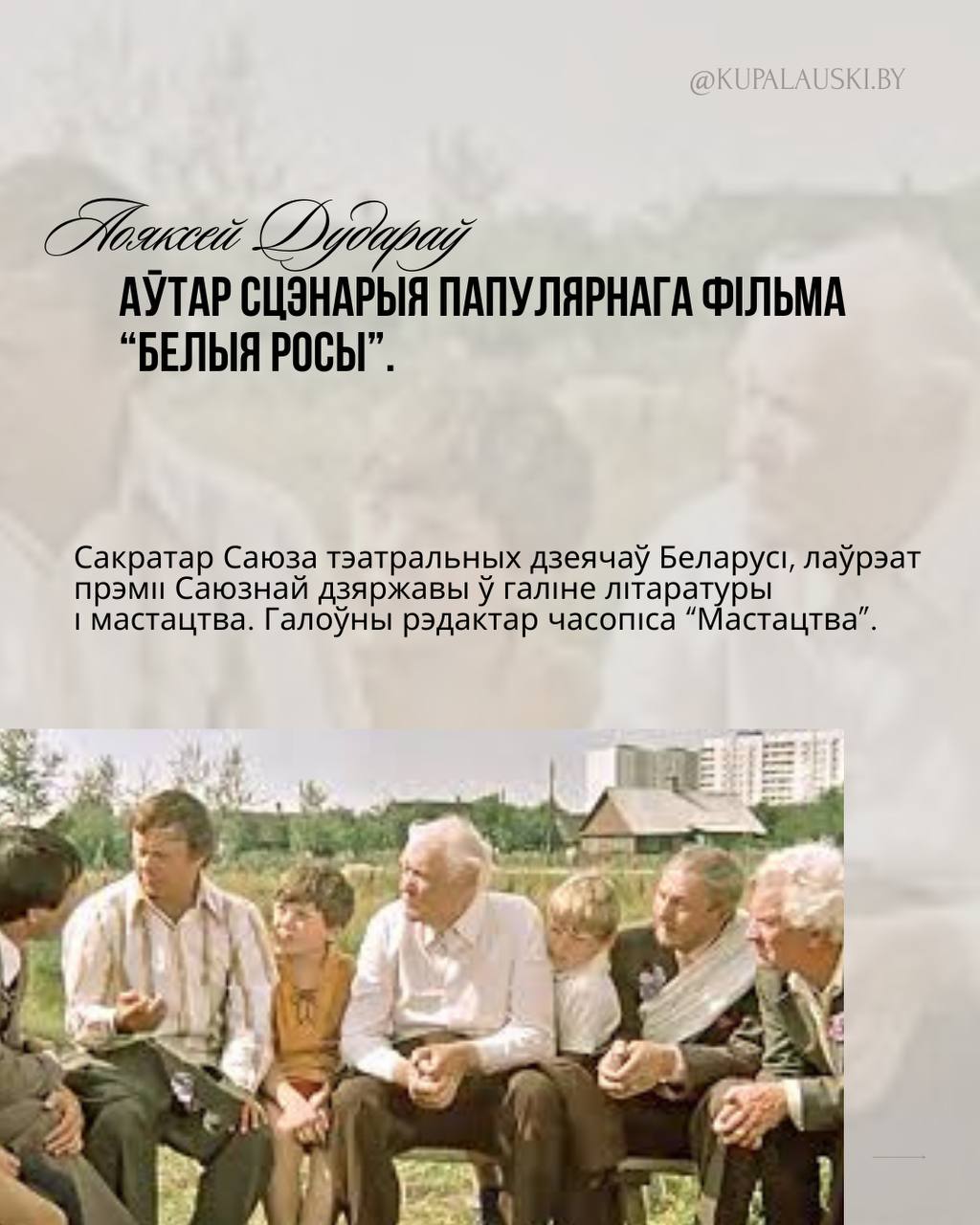 Сёння мы адзначаем асаблівы дзень — 75 год з дня нараджэння выдатнага сябра Купалаўскага тэатра і таленавітага чалавека, Аляксея Дударава!